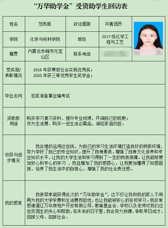 项目背景:通辽万华房地产开发有限公司设立的“万华助学金”项目。