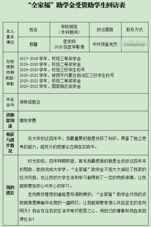 项目背景:我校1999级临床医学专业全守东校友设立及其好友张弘强、姚志刚、李丽丽捐资注入的“全家福助学金”项目。