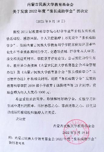 本年度资助情况:向内蒙古民族大学校友会捐赠3万元。