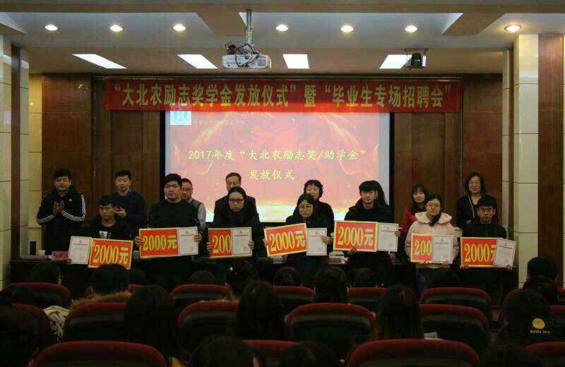 12月12日,农学院在霍林河校区励志楼111会议室举行了“大北农励志奖/助学金”发放仪式。农学院党总支副书记张淑艳主持仪式。内蒙古民族大学教育基金会理事长朝伦巴特尔,大北农集团金色农华种业公司蒙辽事业部总经理秦琪中、蒙辽事业部区域经理高新宇等嘉宾,农学院党总支书记都春霞、内蒙古民族大学教育基金会副秘书长贺智慧等出席,并向受资助的2014级农学专业王东江等15名同学发放了每人2000元助学金。农学院学工办团总支负责人及部分学生共150余人参加仪式。