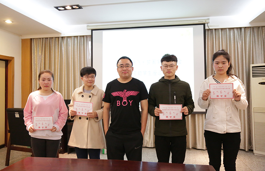4月14日下午,内蒙古民族大学教育基金会在霍林河校区励志楼217会议室举行“谢飞·贫困生助学金”受资助学生座谈会。通辽市永恒饲料有限公司总经理谢飞、内蒙古民族大学教育基金会理事长朝伦巴特尔出席座谈会。通辽市永恒饲料有限公司有关部门负责人和受资助学生参加座谈会。会议由教育基金会副秘书长贺智慧主持。