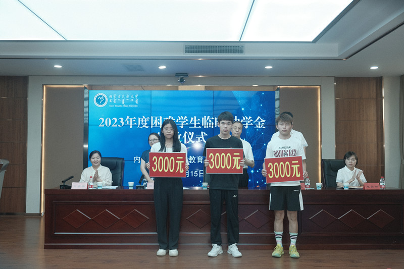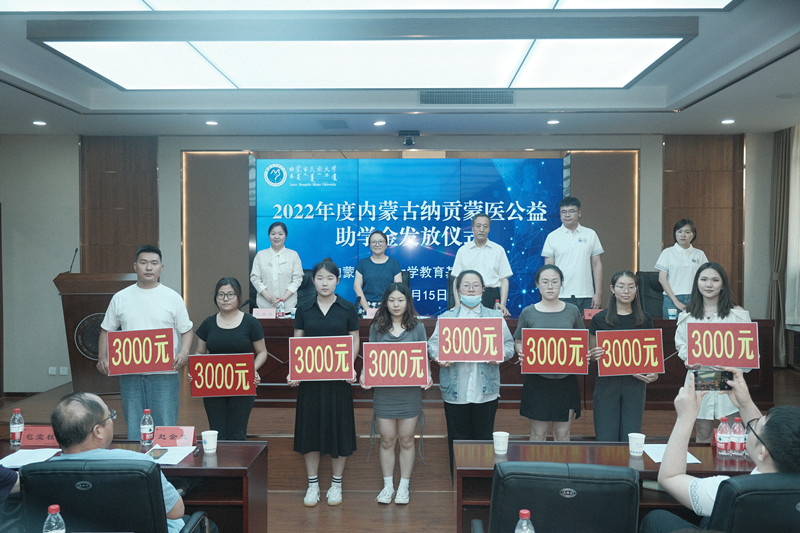本次助学金发放仪式涉及爱心企业、校友及基金会设立的4个资助项目,包括:通辽市协成商贸有限责任公司设立的“通辽协成商贸助学金”;我校1982级蒙医专业校友纳贡毕力格创立的内蒙古纳贡蒙医公益基金会设立的“内蒙古纳贡蒙医公益助学金”;我校1999级临床医学专业校友全守东设立及其好友张弘强、李丽丽注资的“全家福助学金”;教育基金会利用部分无指向捐款设立的“困难学生临时助学金”。本次共发放“通辽协成商贸助学金”5万元、“内蒙古纳贡蒙医公益助学金”3.7万元、“全家福助学金”1万元、“困难学生临时助学金”1.8万元,共计11.5万元,资助30名品学兼优、家庭困难的学生。