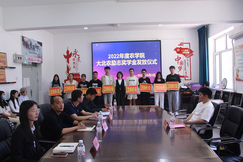 6月2日上午,农学院在学院会议室举办2022年度“大北农励志奖学金”发放仪式。农学院党委副书记衣海会、大北农集团北京丰度高科种业蒙辽区总经理姜利静出席会议,教育基金会基金管理科科长张继瑞,学院全体辅导员及受奖励的20名学生参加会议。发放仪式由学院学工办主任张建飞主持。