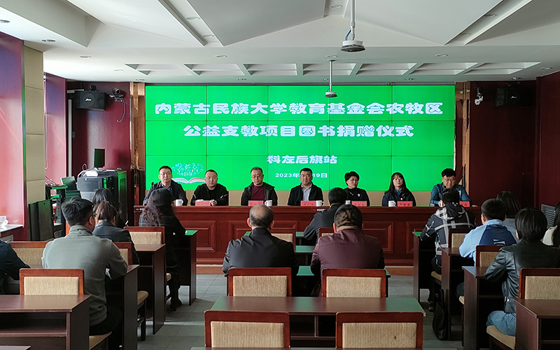 在科尔沁左翼后旗捐赠仪式上,旗人民政府党组副书记尤廷秀、政府办公室副主任周小明、教体局副局长白海成与受捐赠的13所学校代表参加仪式,仪式由旗教体局副局长张志强主持。白海成在致辞中表达了对内蒙古民族大学教育基金会的感谢,要求各学校合理安排、精心使用捐赠图书。他指出,科左后旗教体局要以提升全体师生的文化素养为目标,将进一步指导全旗各中小学校进行有益的课外阅读,积极营造书香飘逸的校园环境。贺智慧介绍了农牧区公益支教项目设立的背景、目标和实施过程,并代表教育基金会向科尔沁左翼后旗胜利农场中心学校等13所学校捐赠国家通用语言文字图书3639册,希望能够丰富农牧区学校图书资源,改善学校教育教学条件,助力乡村教育发展。潮海中心校王云琪老师作表态发言,表示一定使用好这批捐赠书籍,积极引导学生参与读书活动,通过阅读不断丰富知识、提升综合素质。