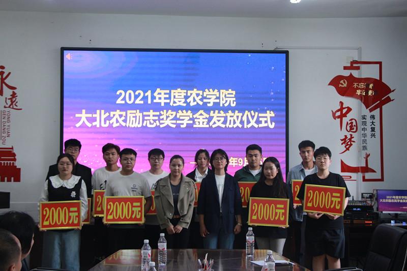 仪式上,都春霞感谢多年来大北农集团对学院的大力支持,希望获得奖学金的同学不辜负大北农集团和老师们的期望,紧抓机遇,珍惜时光,努力提升自我,以强农兴农为己任,勇于肩负起时代的重任,成为国家和社会所需要的有用人才。姜利静鼓励受奖励的同学要自强不息、坚定信念,以履行社会责任为己任,积极投身社会公益,在奉献社会中实现人生的更大价值。贺智慧宣读了2021年度“大北农励志奖学金”发放决定,与会嘉宾为获奖学生颁发奖学金及证书。2019级农学专业王玉哲、2019级农业资源与环境专业刘京代表受奖励学生做表态发言,两位同学纷纷表示非常感谢大北农集团对同学们的关爱,决心刻苦学习、锐意进取,将企业的奖励化作自己拼搏奋斗的不竭动力,用实际行动回馈社会。