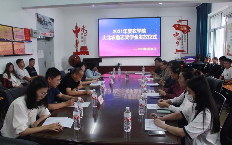 9月15日下午,内蒙古民族大学教育基金会2021年度农学院“大北农励志奖学金”发放仪式在农学院会议室举办。大北农集团北京丰度高科种业有限公司东北平台蒙辽区总经理姜利静,销售管理专员敖道胡,农学院党委书记都春霞,校党政办公室副主任、教育基金会常务副秘书长贺智慧,教育基金会工作人员,农学院团学工作负责人、辅导员及受奖励的20名同学参加仪式。仪式由农学院党委副书记衣海会主持。