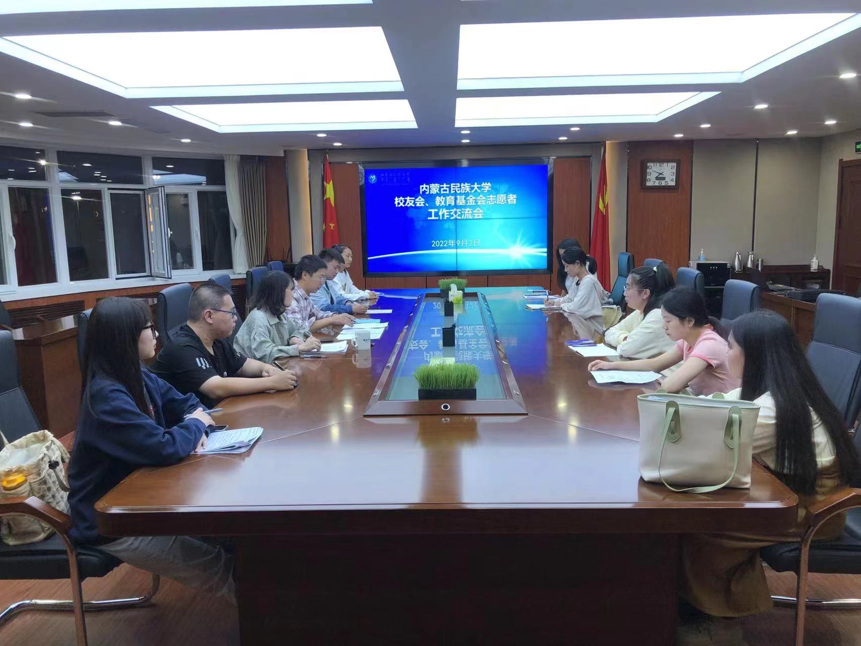 9月2日,内蒙古民族大学校友会、教育基金会志愿者工作交流会在霍林河校区励志楼213会议室举行。会议由党政办公室副主任、校友会秘书长、教育基金会常务副秘书长贺智慧主持。党政办公室基金管理科副科长张继瑞,校友会、教育基金会遴选的10余名志愿者参加会议。