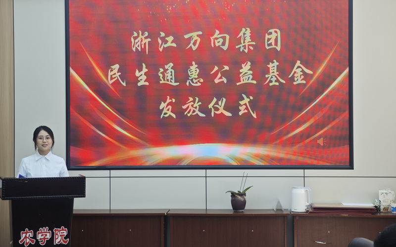 张晓丽代表学院对万向集团表示由衷地感谢,并对受资助学生提出了三点希望:要珍惜大学生活,通过学习努力改变命运;要争做有能力的“新农人”,为乡村的农业经济发展作出贡献;要将爱心与责任传承下去,主动帮助他人,服务社会。