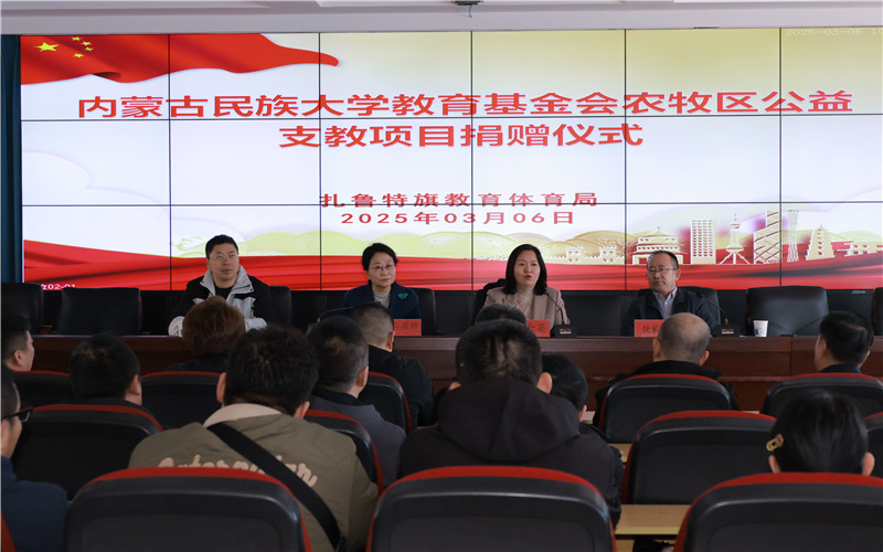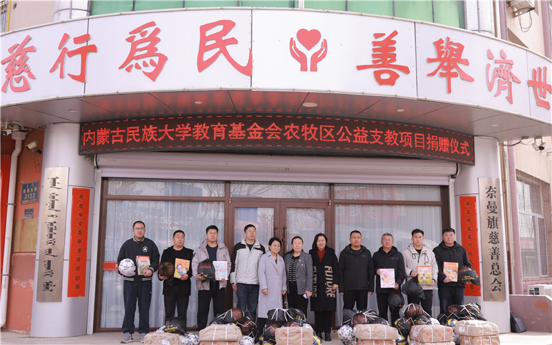 为助力通辽市农牧区教育事业发展,丰富学校文体资源,3月6日至7日,内蒙古民族大学教育基金会联合学校关心下一代工作委员会赴通辽市扎鲁特旗教育体育局、开鲁县教育体育局、奈曼旗慈善总会举行农牧区公益支教项目捐赠仪式。学校教育基金会常务副秘书长白金英,法学院教授、关心下一代工作委员会副主任娜仁图雅,各旗县教体局、奈曼旗慈善总会主要负责人,受赠学校领导及相关工作人员参加仪式。