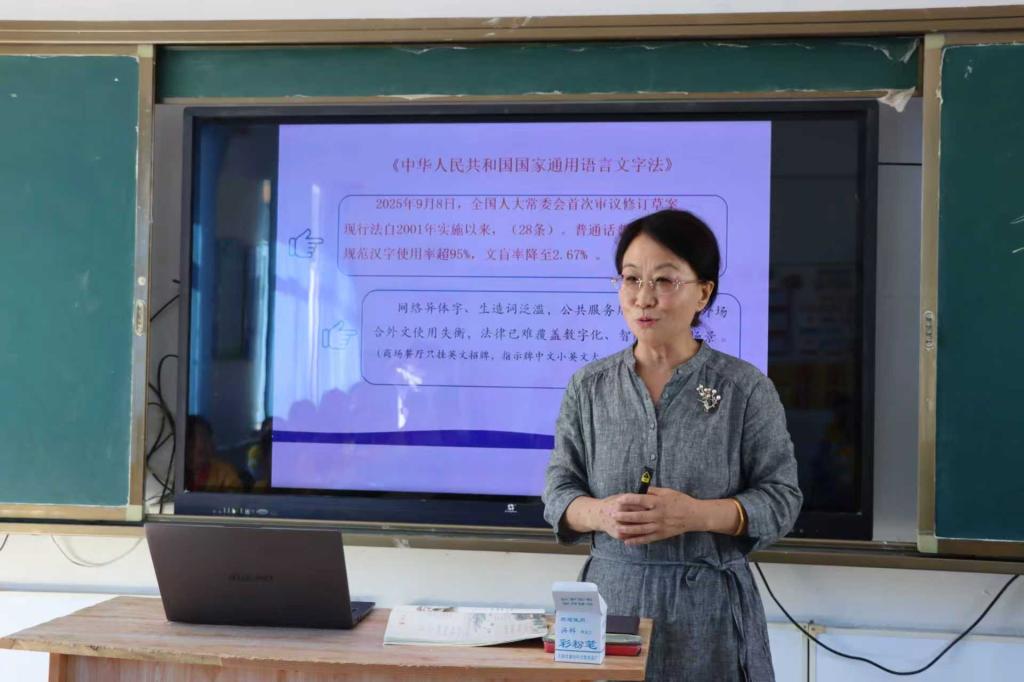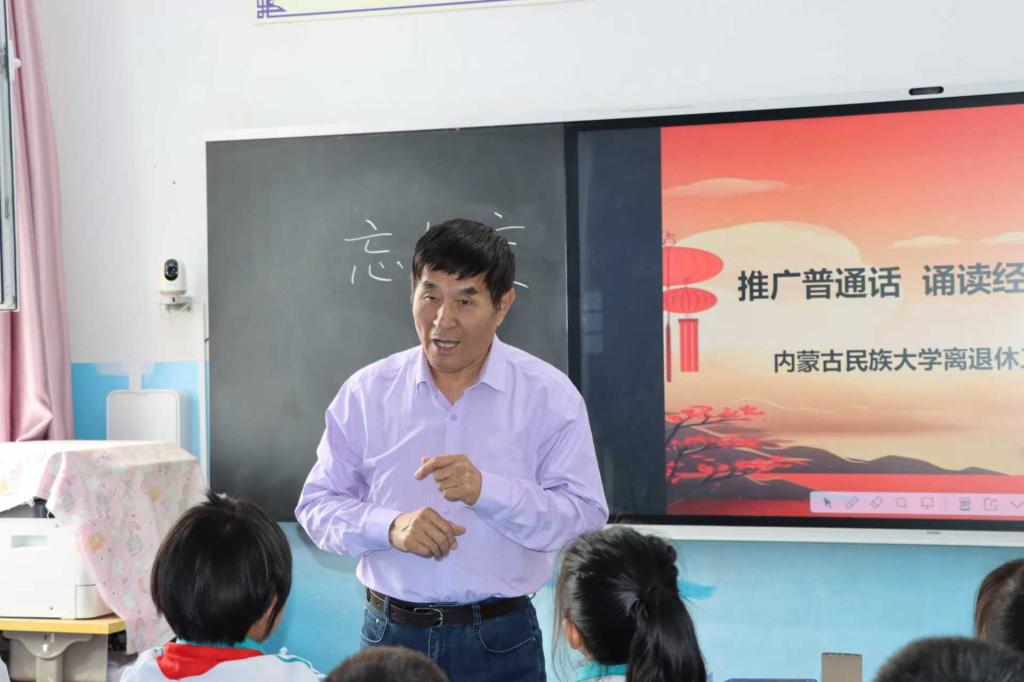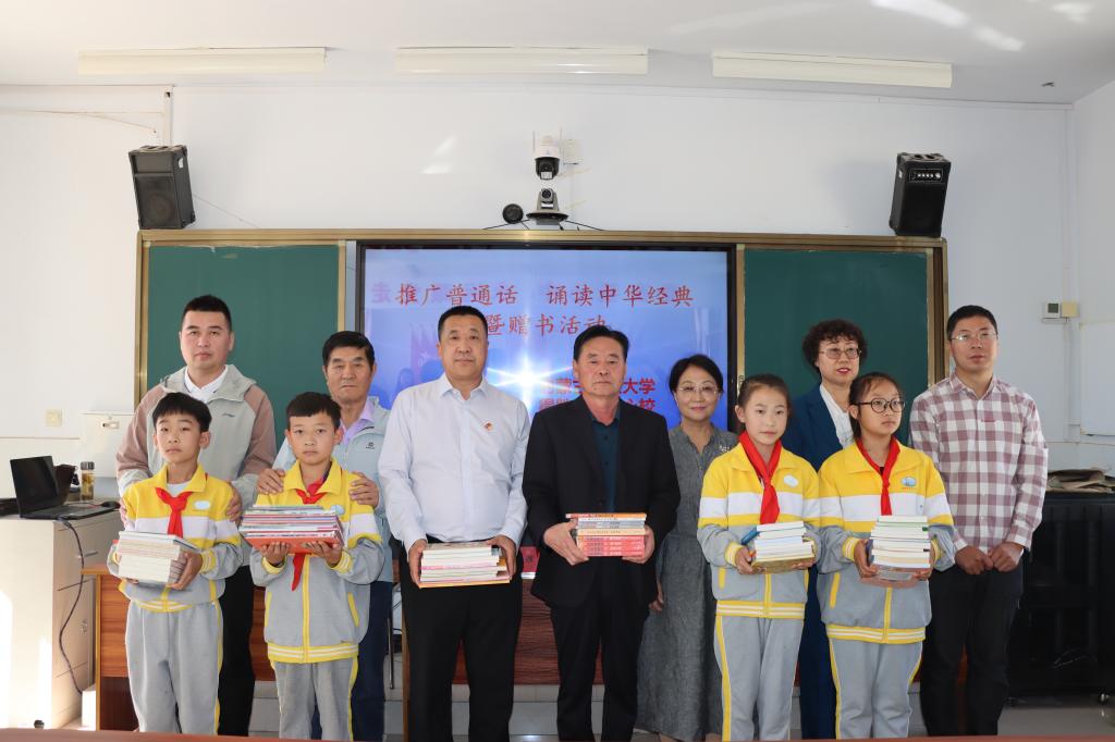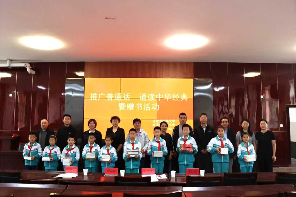 为深入学习贯彻党的二十大及二十届二中、三中全会精神,深入贯彻落实习近平总书记关于教育的重要论述和关于语言文字的重要指示批示精神,加大国家通用语言文字推广力度,促进铸牢中华民族共同体意识,9月18日和21日,离退休工作处、图书馆(博物馆)、校友工作办公室(基金工作办公室)走进奈曼旗得胜学区中心校和库伦旗库伦小学,开展“推广普通话 诵读中华经典”活动,并为两所学校分别捐赠青少年读物各200册。离退休工作处副处长孟丽群,我校老教授协会(老教授报告团)会长娜仁图雅,退休教师姚民治、刘向军,图书馆(博物馆)、校友工作办公室(基金工作办公室)相关工作人员共计300余名师生参加活动。